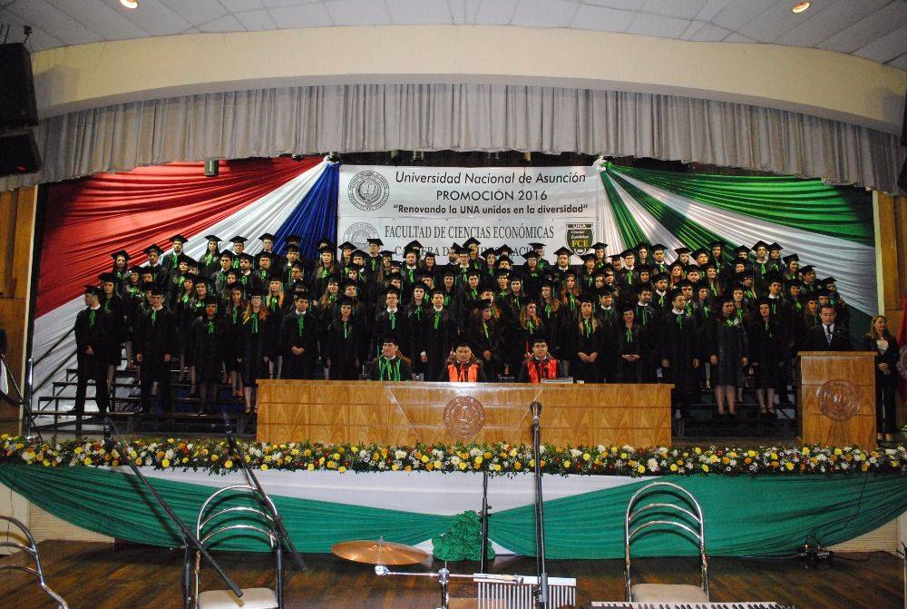 Se realizó este lunes, 9 de octubre de 2017, el acto de colación de grado en la que 131 nuevos egresados de la carrera de Administración, de la Escuela de Administración de la Facultad de Ciencias Económicas de la Universidad Nacional de Asunción, Sede Central, recibieron sus títulos.