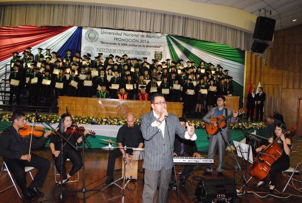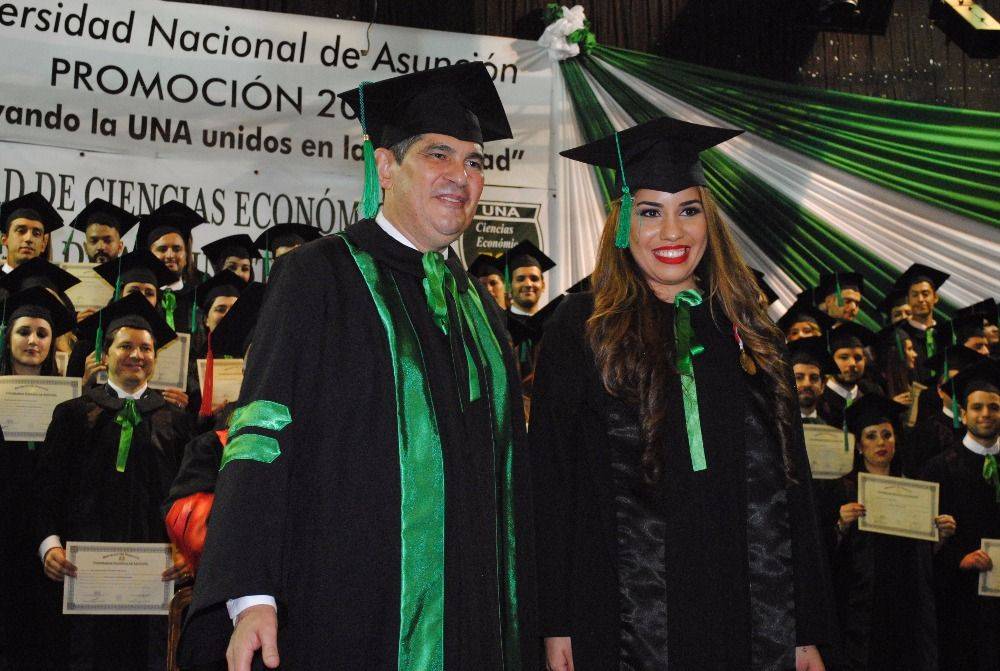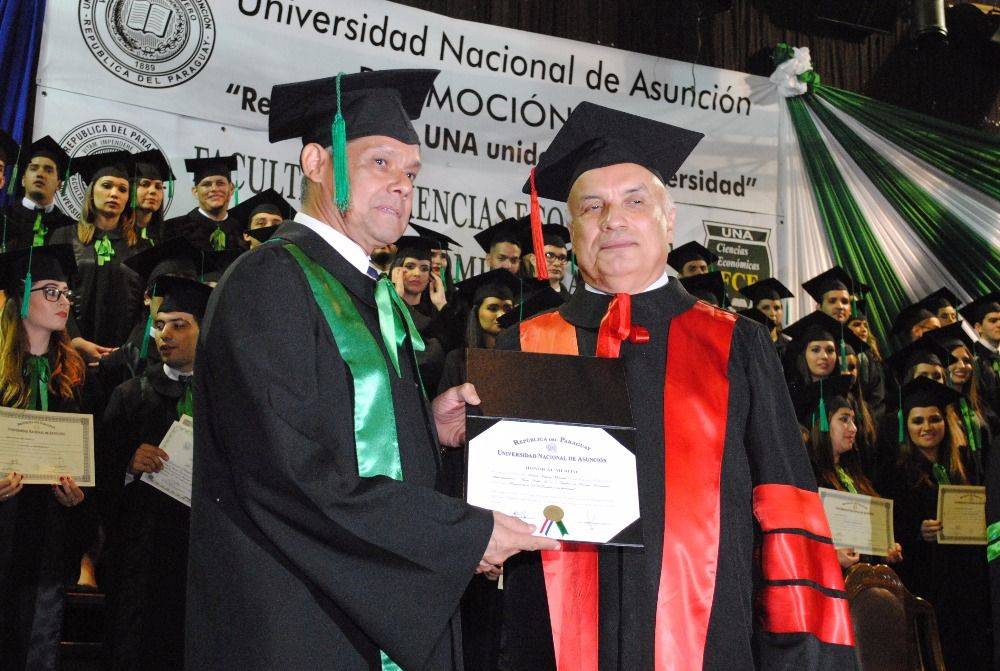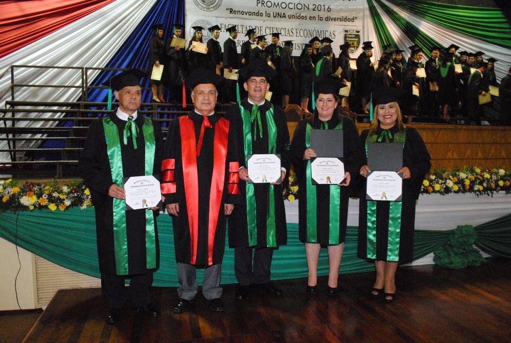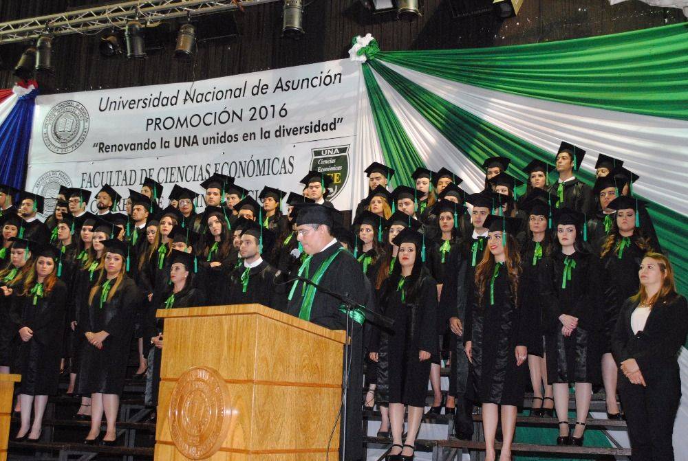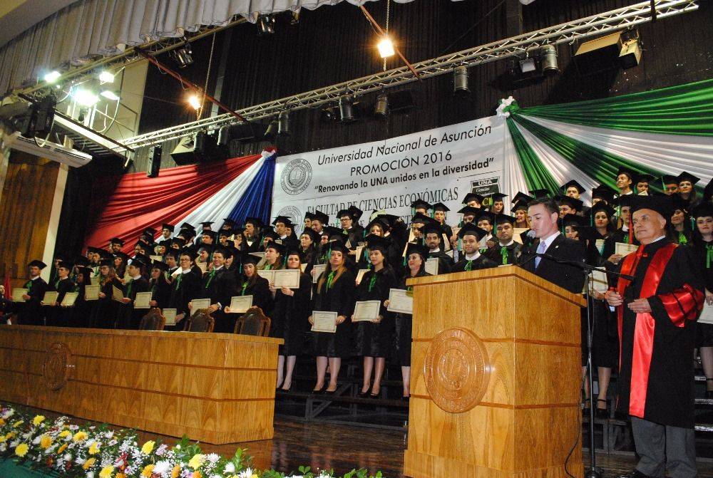Les dijo, además que: “ser egresado de la Facultad de Ciencias Económicas UNA deja una marca personal: el de distinguirse por formar parte de una Institución que, desde hace 80 años, está firme, cumpliendo su misión y proyectando nuevos desafíos”.