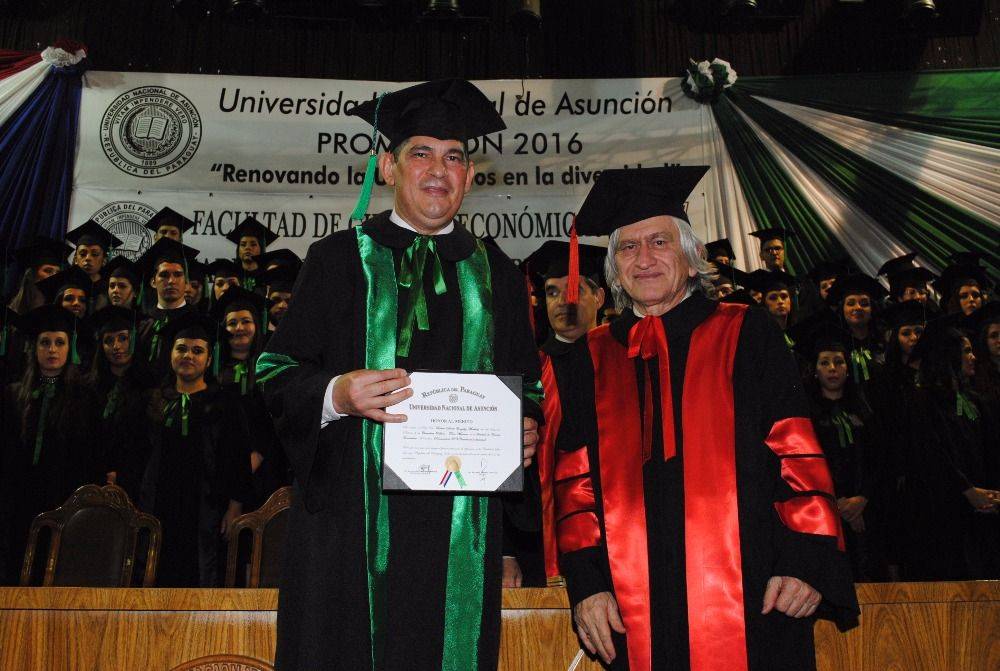 Continuó diciendo “hoy marcamos un hito en nuestras vidas, que no solo conlleva alegrías y satisfacción, conlleva también una gran responsabilidad: el Paraguay, nuestra tierra, nuestro hogar, necesita de profesionales comprometidos con su desarrollo, con su crecimiento socioeconómico y sobre todo cultural”.