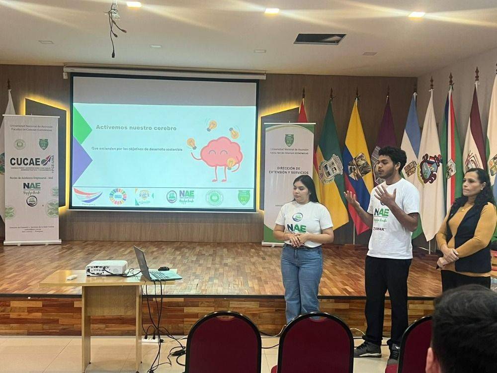 En esta oportunidad la Prof. Dra. Celina González de Álvarez, acompañada de la Univ. Fernanda Irala y el Univ. Victor González Noguera, estudiantes de la Facultad de Ciencias Económicas – Filial Caacupé, desarrollaron el tema “Los Objetivos de Desarrollo Sostenible ODS y su acción en la institución”, donde destacaron qué son los ODS y su origen (Agenda 2030 de la Naciones Unidas), así como el rol de las instituciones públicas en el cumplimiento de los ODS para incorporar en sus planes y programas, y alinear proyectos con metas específicas. Finalizando la charla con el mensaje: “Los ODS no son solo un compromiso internacional, son una oportunidad para mejorar la gestión pública y generar un impacto real en nuestras comunidades. Y ese cambio empieza desde cada institución, desde cada decisión y desde cada persona.”