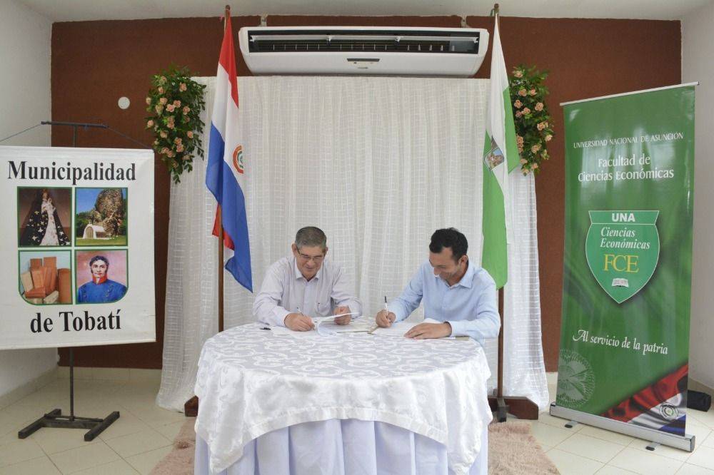 Fueron signatarios del documento el Prof. Dr. Roberti Daniel González Martínez, Decano de la FCE y el Abog. Luis Osmar Ferreira, Intendente de la Municipalidad de Tobatí.