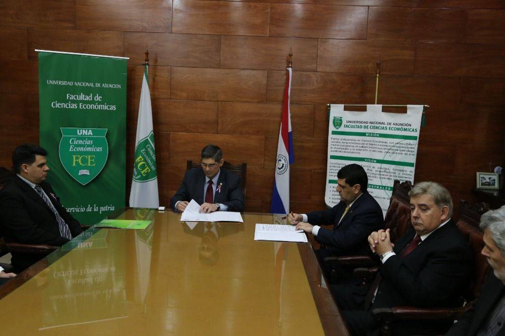 Certificaron esta alianza el decano de la FCE UNA, Prof. Dr. Roberti Daniel González, y el secretario ejecutivo de la SEDECO), Abog. Juan Marcelo Estigarribia López. Del acto, que tuvo lugar en el decanato de nuestra casa de estudios en el Campus Universitario de San Lorenzo, participaron también autoridades de ambas instituciones.