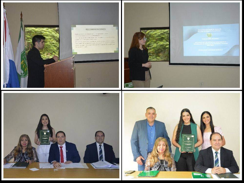 La instancia de cierre académico estuvo a cargo de una mesa examinadora integrada por el Prof. Mag. Derlis Lugo, Vicedecano de la FCE-UNA; el Prof. Econ. Ricardo Asta, Director de la carrera; y la Prof. Econ. Graciela Arévalos de Bobadilla, destacada docente de la Escuela, quienes valoraron el esfuerzo, la rigurosidad y el compromiso académico demostrados por los estudiantes.