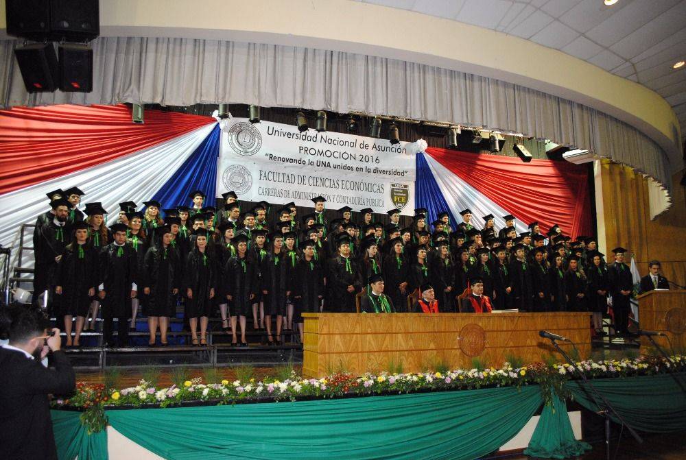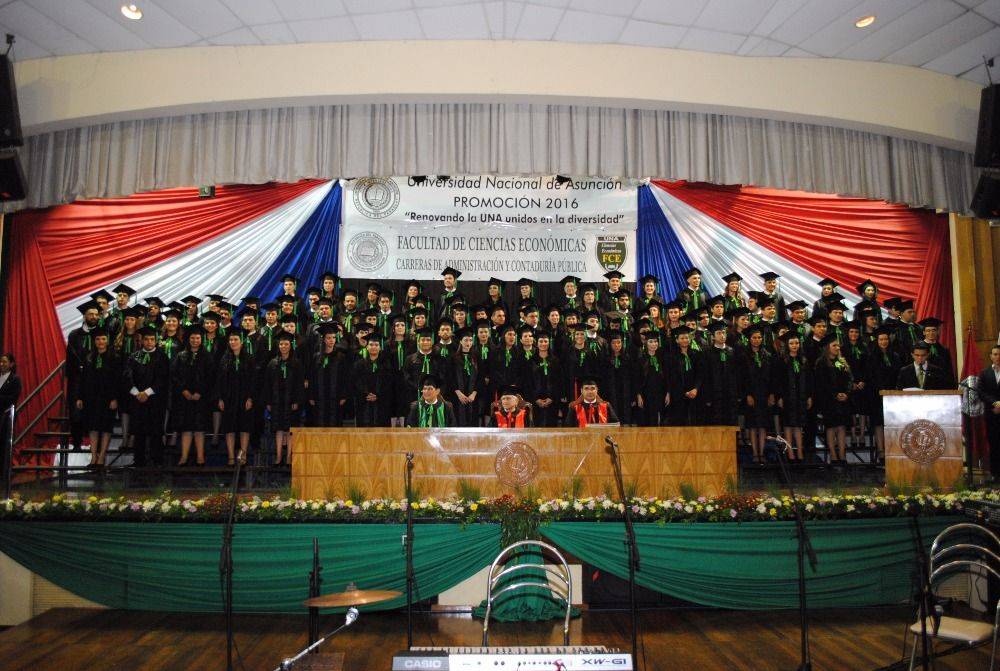 En el acto de colación de grado que se llevó a cabo en el Centro de Convenciones de la UNA desde las 18 h, recibieron sus diplomas de grado este jueves, 2 de noviembre de 2017, 102 Contadores Públicos y 5 Licenciados en Administración de la Promoción "Renovando la UNA unidos en la diversidad”, de la Filial Paraguarí de la Facultad de Ciencias Económicas de la Universidad Nacional de Asunción.
