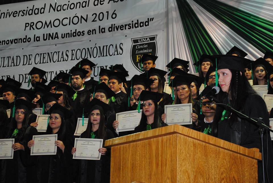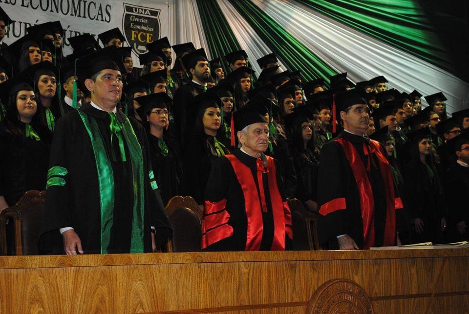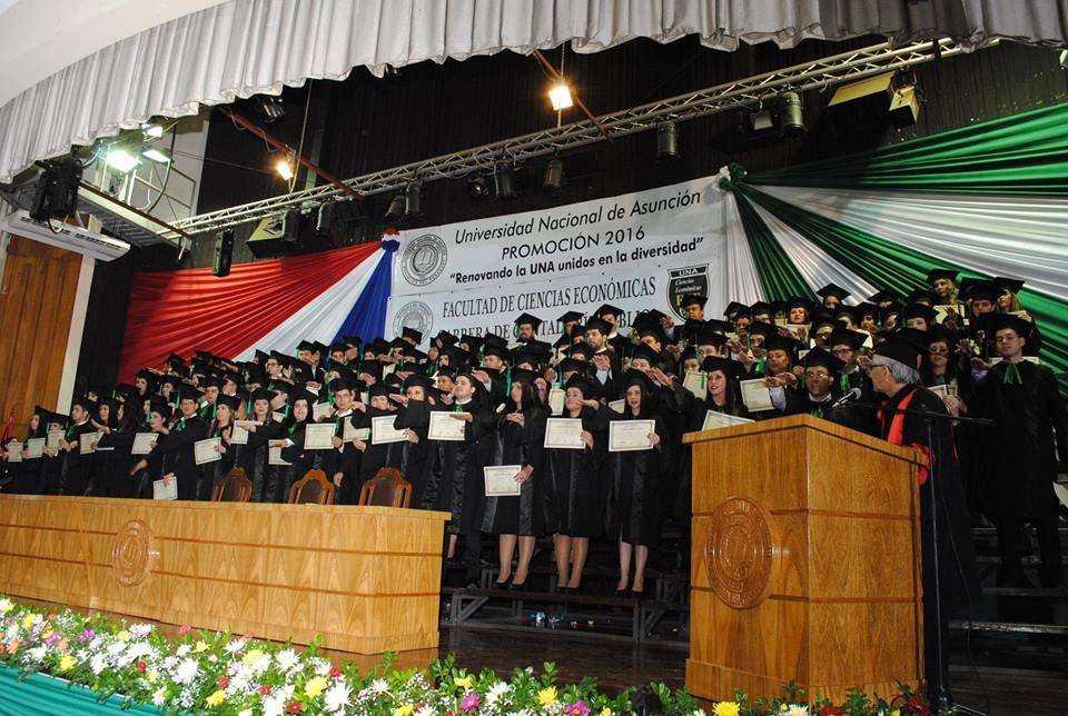 Se realizó este viernes, 27 de octubre de 2017, el acto de colación de grado en la que 160 nuevos egresados de la carrera de Contaduría Pública Turno Noche, de la Escuela de Contabilidad de la Facultad de Ciencias Económicas de la Universidad Nacional de Asunción, Sede Central, recibieron sus títulos. La madrina de la promoción que lleva el nombre de “Renovando la UNA unidos en la diversidad” es la Prof. Lic. Gladys Sunilda Fernández.