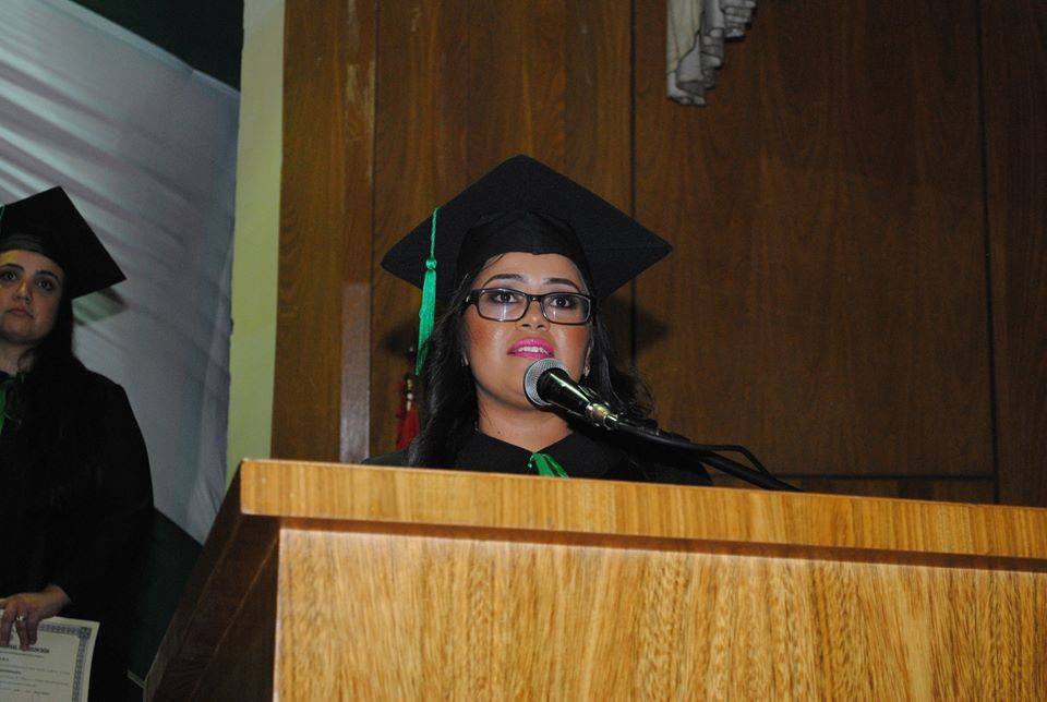 En representación de sus compañeros, la mejor egresada Laura María Ortiz Rivera, expresó su gratitud a Dios, a sus padres y familiares, a sus amigos y al plantel docente de la Institución. Dijo que: “el rol del administrador es fundamental en una sociedad que clama a gritos la correcta administración de los recursos, y con especial atención, aquellos del Estado, que deben gestionarse para que el bienestar llegue en igualdad de derechos y condiciones para todos los que habitamos en Paraguay”.