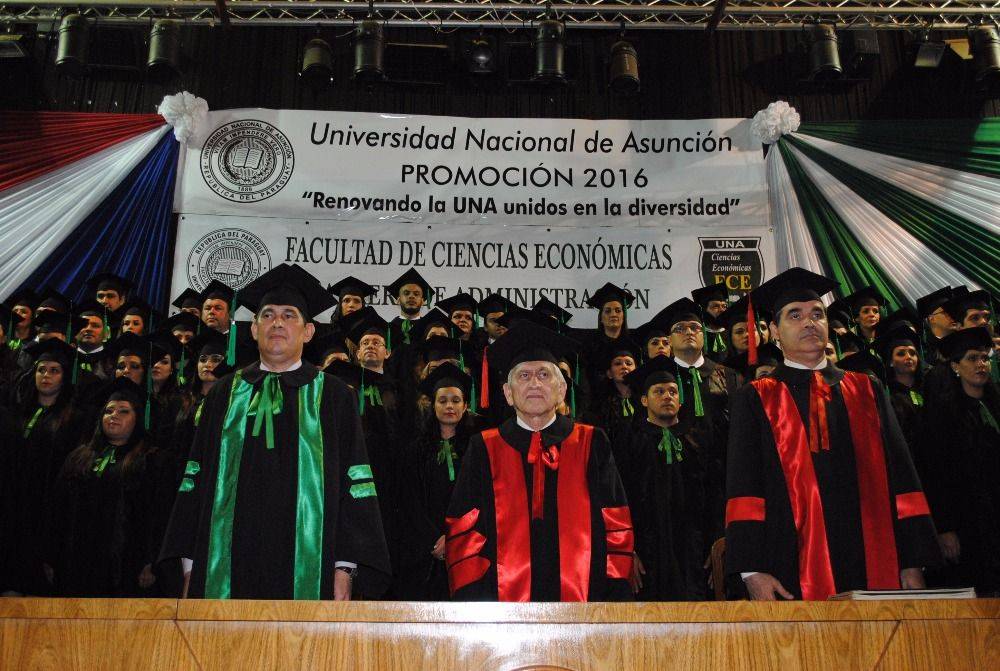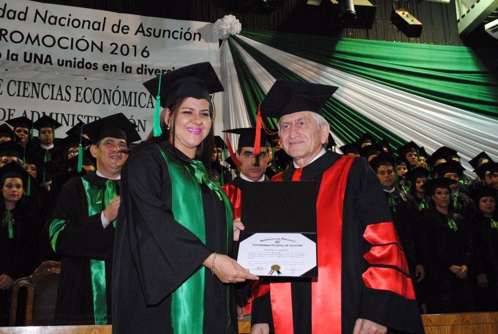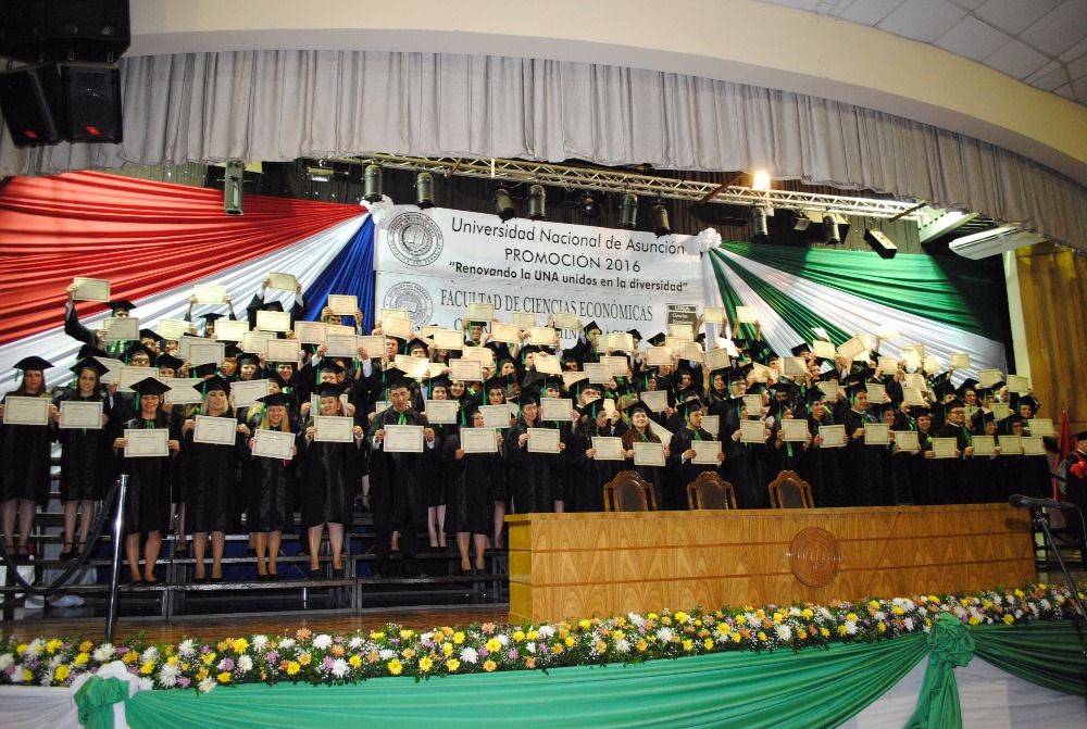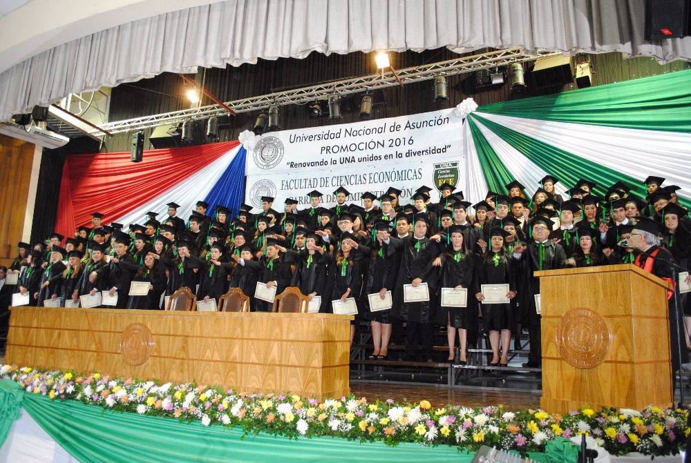 Más de 140 Licenciados en Administración, de la Promoción "Renovando la UNA unidos en la diversidad”, de la Filial Villa Hayes de la Facultad de Ciencias Económicas de la Universidad Nacional de Asunción, recibieron sus diplomas de grado este miércoles, 8 de noviembre de 2017, en el acto de colación de grado que se llevó a cabo en el Centro de Convenciones de la UNA, desde las 18 horas.