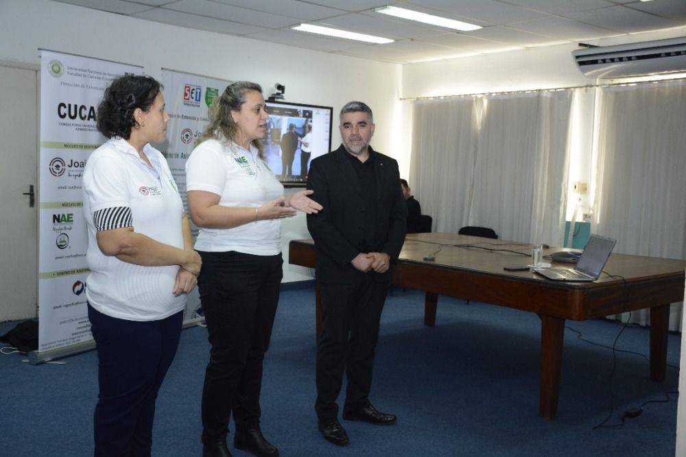 Acompañaron esta actividad la Directora de Extensión y Servicios Prof. Dra. Nathalia Maria Valdez Arrua, la Coordinadora del NAT Prof. Dra. Celina González de Álvarez, la Coordinadora del NAE Lic. Verónica Rojas y un estudiante consultor del Núcleo de Asistencia Tributaria para las consultas tributarias.