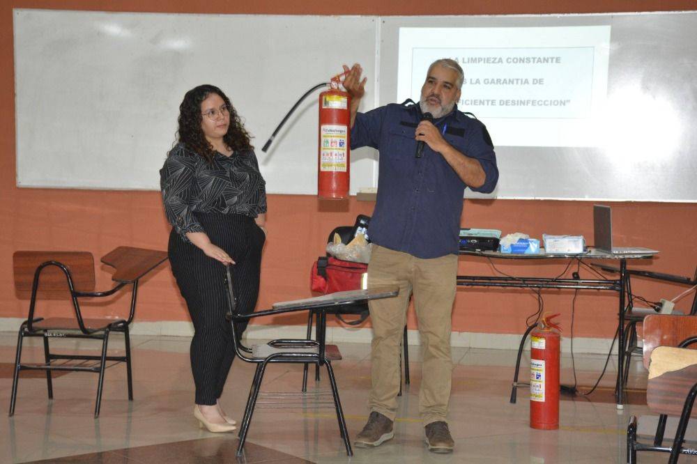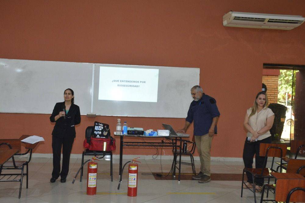 La actividad se realizó el viernes 28 de noviembre en el Salón de Eventos de la facultad y estuvo dirigida a docentes, funcionarios administrativos y personal de servicios. La capacitación fue impartida por el Ing. Marcelo Galeano Espinoza, bombero voluntario y combatiente activo de la ciudad de Luque.