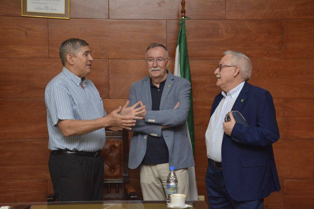 En ese marco, los docentes fueron recibidos por el Prof. Dr. Roberti Daniel González, Decano de la FCE-UNA; acompañado por el Prof. Mag. Reisneyder Lara, Director de Postgrado; el Prof. Mag. Justo Camacho, Director de Investigación y el Prof. Lic. Jorge Aguilera, Director de Relaciones Nacionales e Internacionales, ocasión en la que se abordaron líneas de cooperación académica e institucional.
