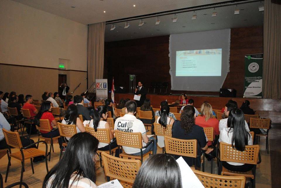 El curso fue encabezado por la Representación de Graduados de la FCE y los alumnos del 4to curso de la carrera de Contaduría Pública-Filial Caacupé, quienes encantados llegaron a la Sede Central a acompañar esta actividad de la Secretaría de Estado de Tributación (SET).