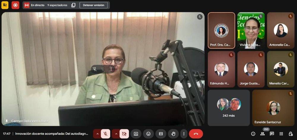 La Facultad de Ciencias Económicas de la Universidad Nacional de Asunción llevó a cabo, con gran convocatoria, el taller virtual “Innovación Docente Acompañada: del Autodiagnóstico a la Implementación”, que reunió a más de 250 docentes de la Sede Central de San Lorenzo y de las Filiales Caacupé, Caaguazú, Coronel Oviedo, Paraguarí, San Estanislao, San Pedro, Villa Hayes y Villarrica, todos comprometidos con el fortalecimiento de sus prácticas pedagógicas y la mejora continua en los procesos de enseñanza-aprendizaje.