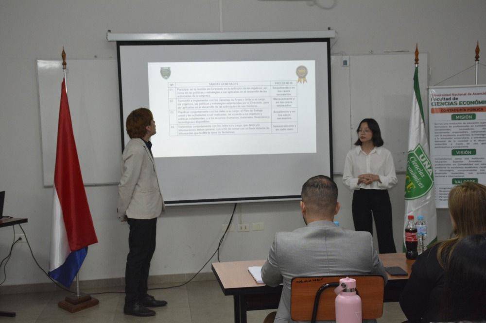 También acompañaron la jornada la Prof. Mag. Eva Pitta, directora de la Escuela de Contabilidad; la Prof. Nathalia Roa, coordinadora académica; y el C.P. Denis Benítez, coordinador del Turno Noche, Sección B.