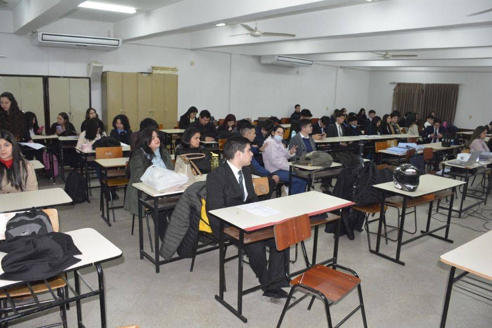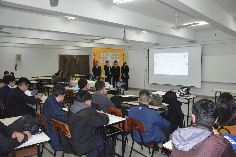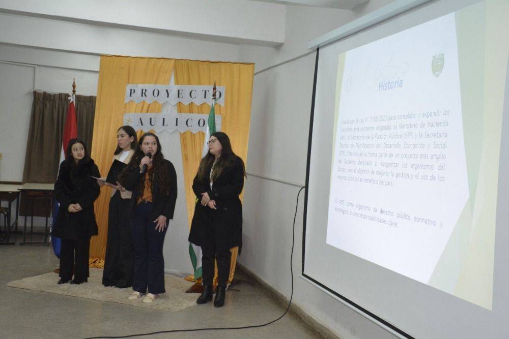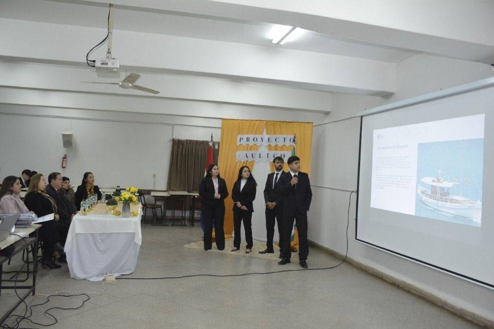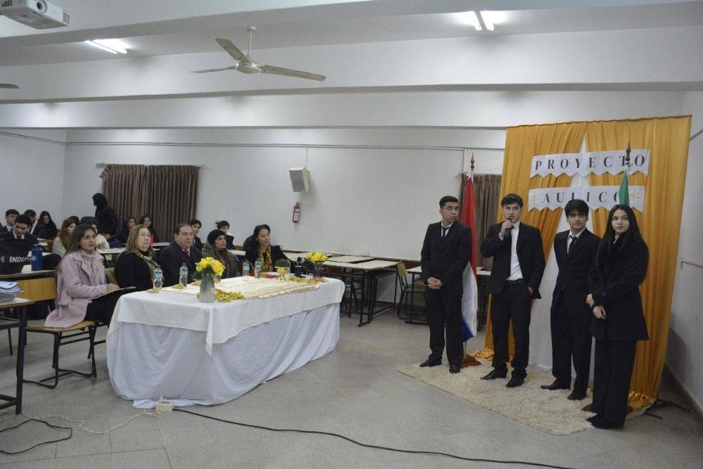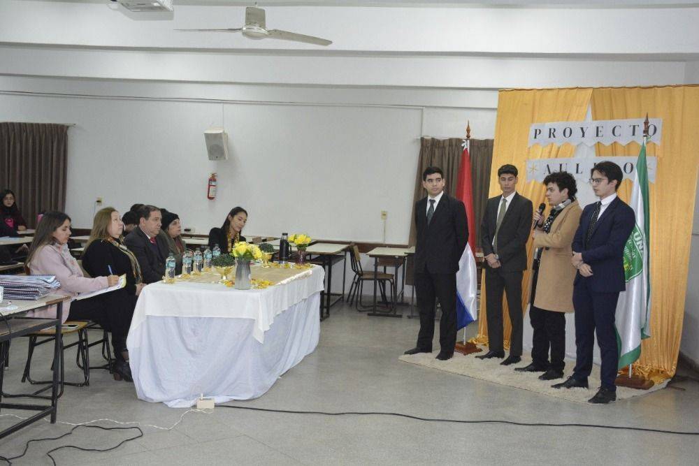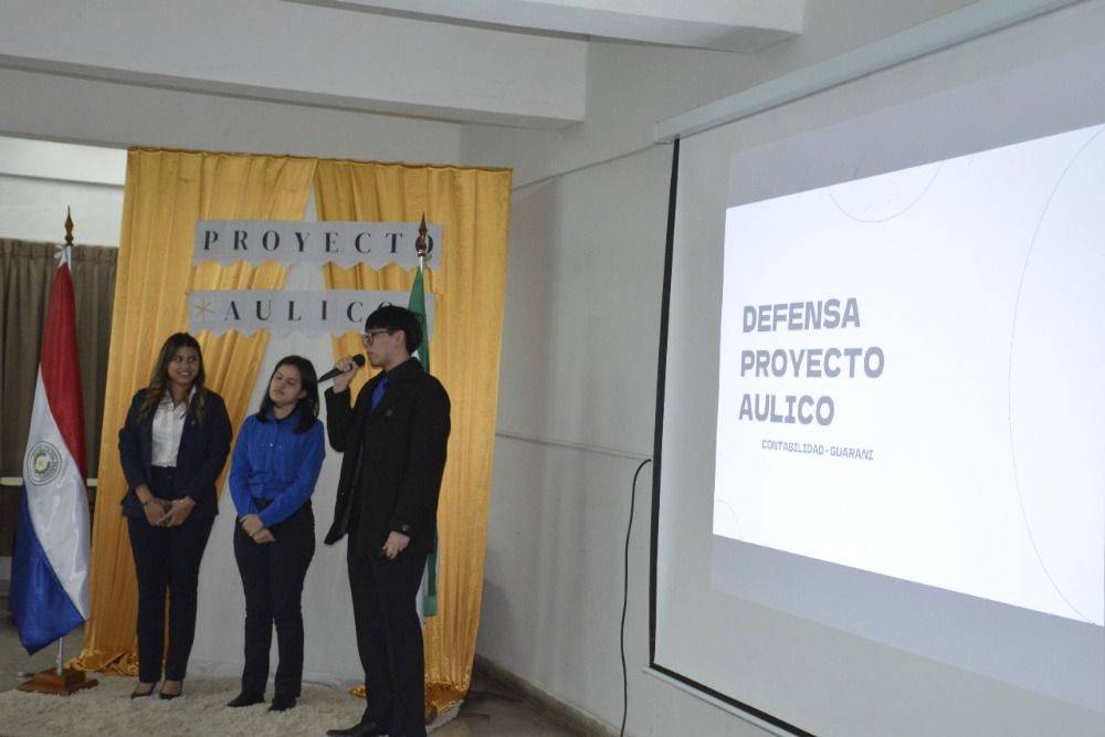 La defensa del proyecto contó con la presencia del Prof. Mag. Derlis Daniel Lugo, Vicedecano de la institución; la Prof. Mag. Teresa Mercedes Salvioni, miembro del Consejo Directivo; la Prof. C.P. Nathalia Roa Carreras, Coordinadora Académica; y el C.P. Denis Rodrigo Benítez, Coordinador de la Sección B. También estuvieron presentes estudiantes e invitados especiales que acompañaron y valoraron el trabajo interdisciplinario desarrollado por los alumnos.