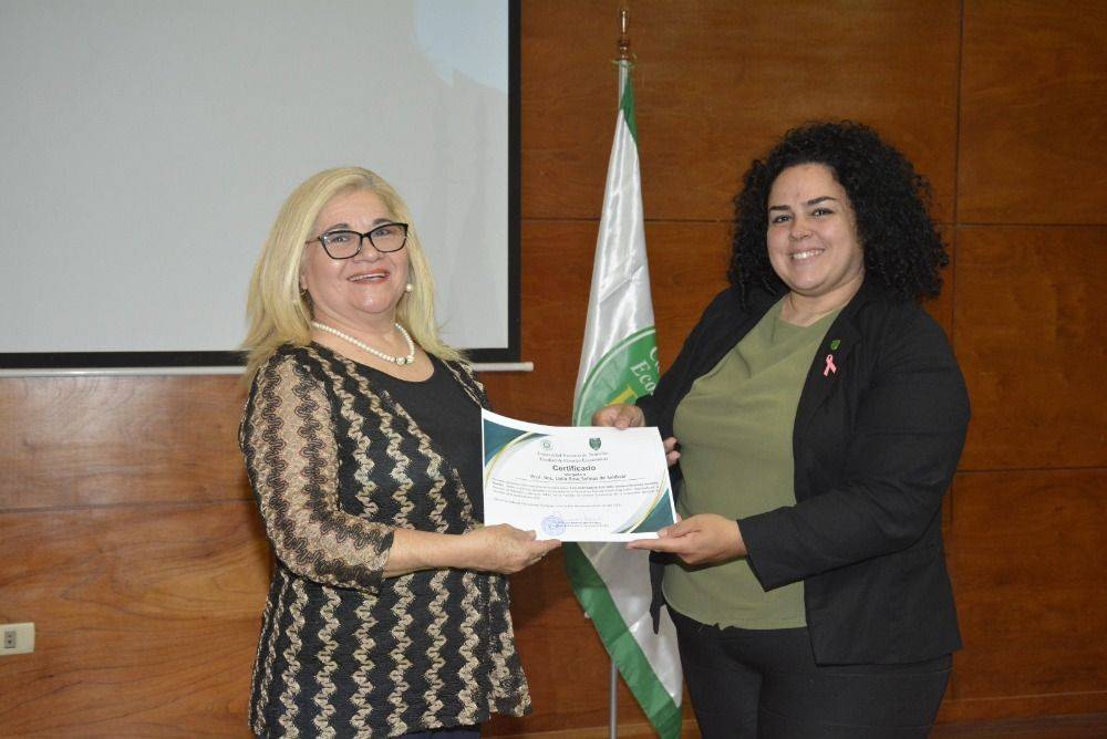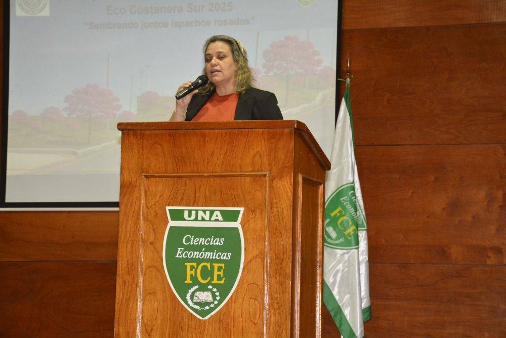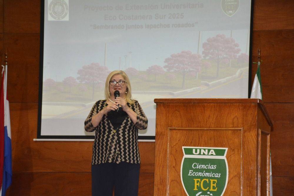 El martes 14 de octubre se llevó a cabo la Charla de Concienciación: “Cada árbol cuenta para dejar un legado académico en defensa del planeta” en el marco del proyecto “Eco Costanera Sur 2025: Sembrando Juntos Lapachos Rosados” a cargo de la Prof. Dra Lidia Rosa Saldivar de Salinas en el Aula Magna de la Facultad de Ciencias Económicas de la Universidad Nacional de Asunción (FCE-UNA). La iniciativa es organizada por la Dirección de Extensión y Servicios, en conjunto con las carreras de Contaduría Pública, Economía y Administración.